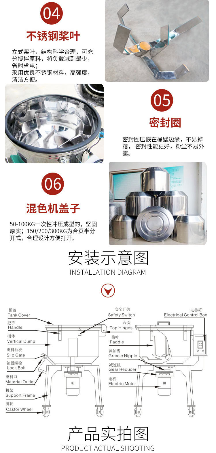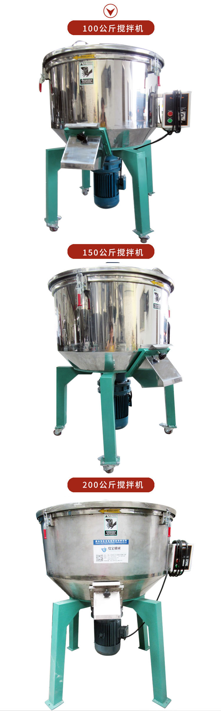 100kg食品小型立式拌料機(jī) |小型拌料機(jī) |不銹鋼立式拌料機(jī)桶體沖壓成型耐用密封好,佛山紅寶機(jī)械專業(yè)生產(chǎn)各種小型拌料機(jī),桶體采用201不銹鋼,沖壓成型制作!